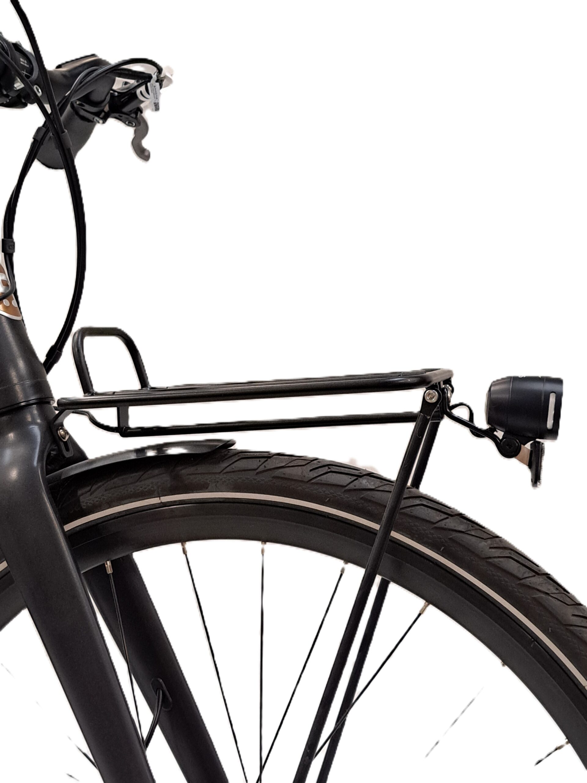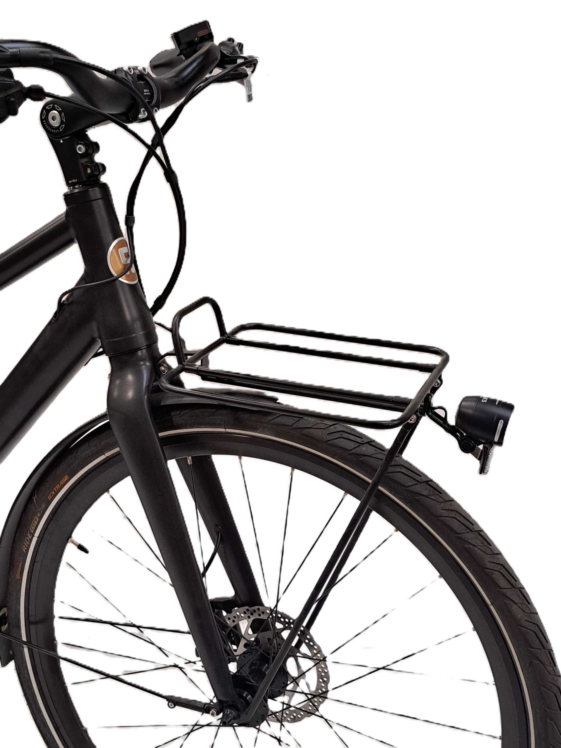 Opmerking: Fiets heeft een bagagedrager vooraan en een frameslot.